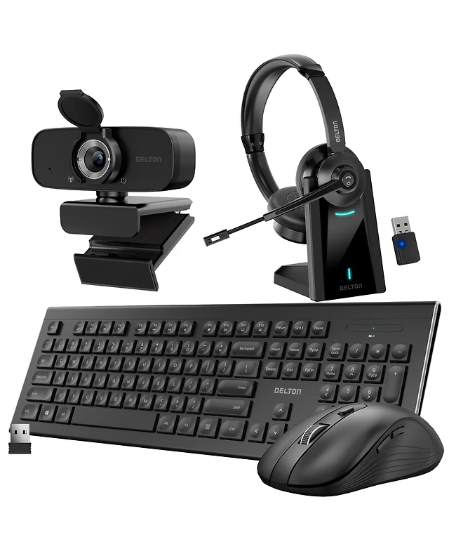 Delton 90X Bluetooth Headset with Usb Dongle, 1080p Usb Webcam with Adjustable Mounting Clip, Wireless Keyboard and Mouse Combo, Compatible with Lapto