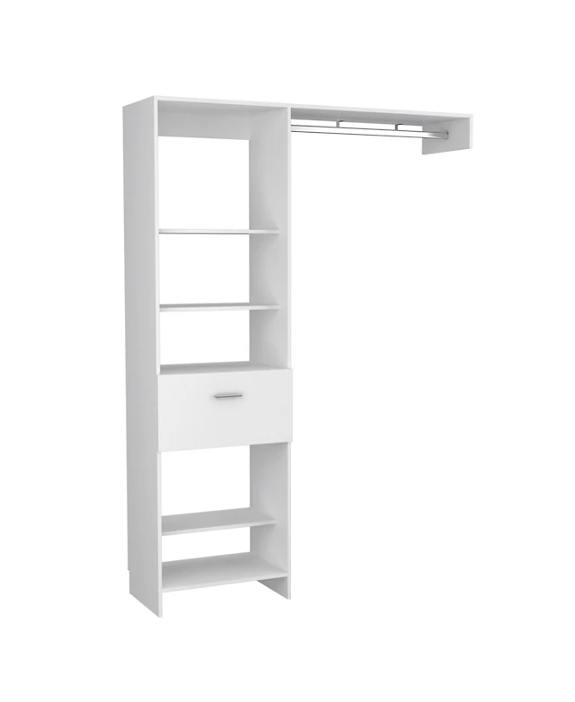 Granger Armoire, 1 Door, 3 Drawers, 7 Shelves, 10 Legs, White