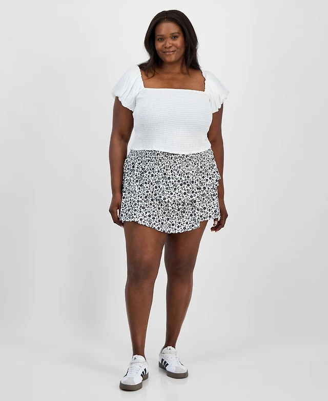 Derek Heart Trendy Plus Smocked Floral Bubble-Hem Dress