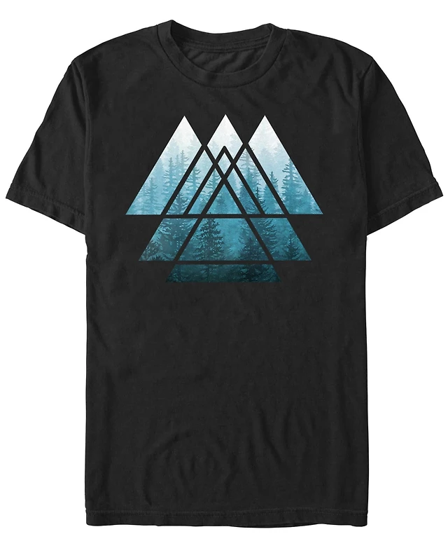Design By Humans Men's Sacred Geometry Triangles Misty Forest Short Sleeve T-Shirt