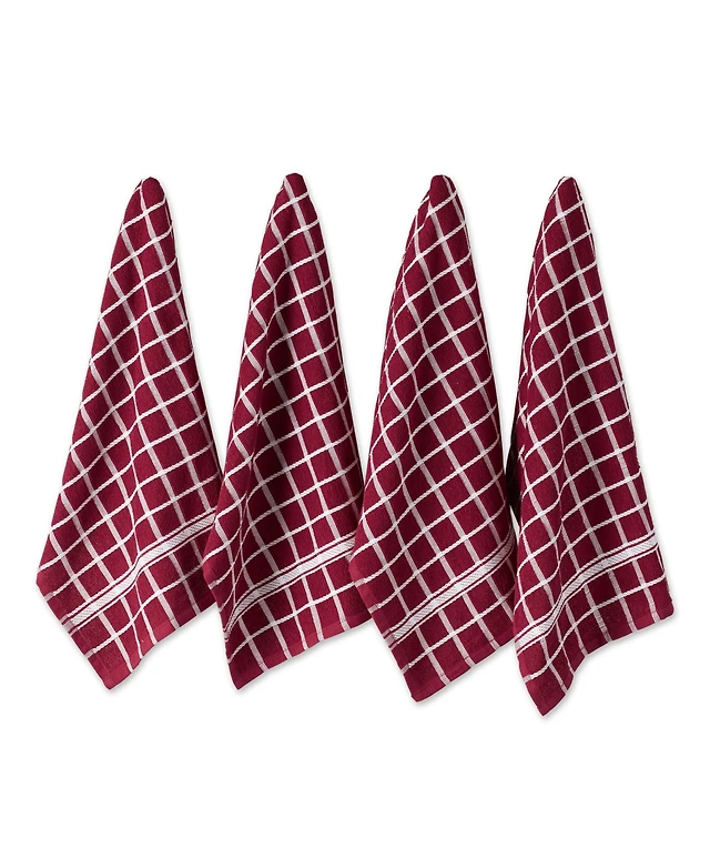 Design Imports Basic Terry Collection Windowpane Dishtowel Set, 16x26", Wine Check, 4 Piece