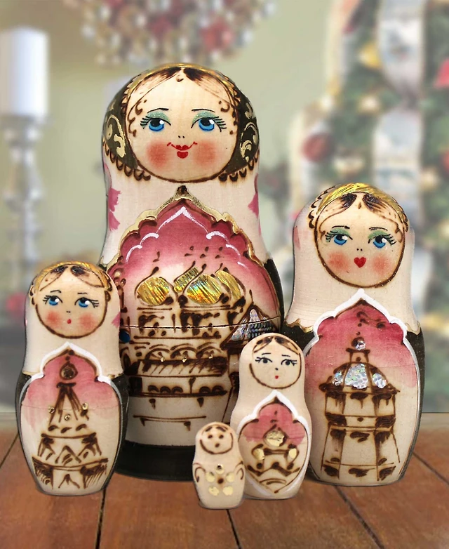 Designocracy Cathedral Matreshka Hand painted Nested Doll Set of 5 by G.DeBrekht