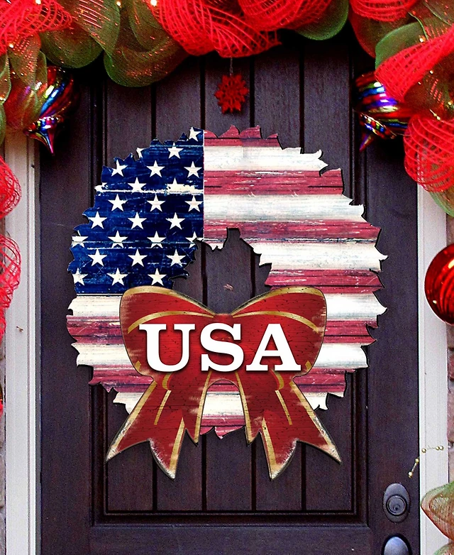 Designocracy Usa American Flag Wreath Wooden Door Wall Hanger