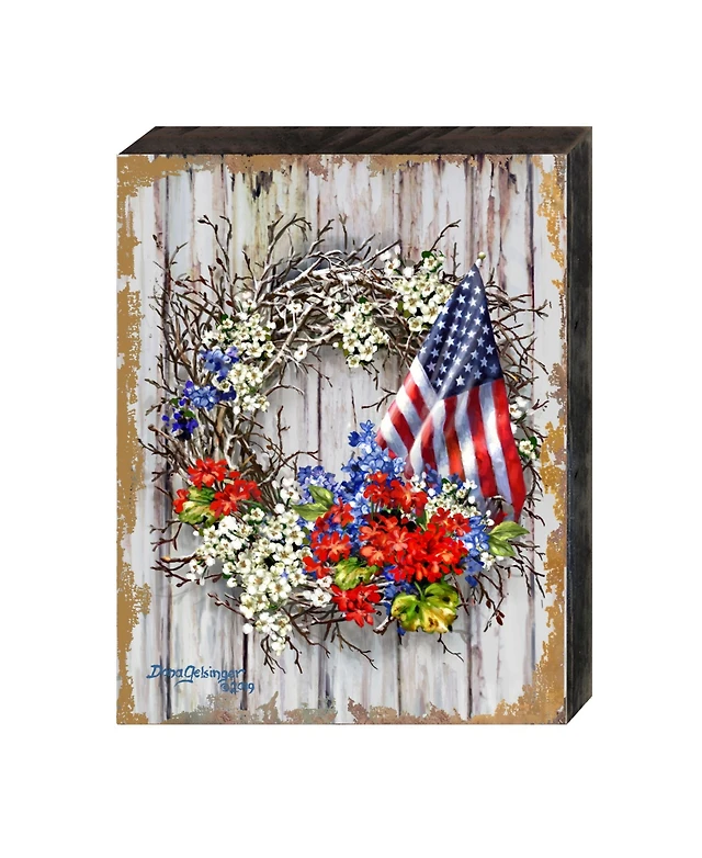 Designocracy Patriotic Wreath by Dona Gelsinger Wooden Block