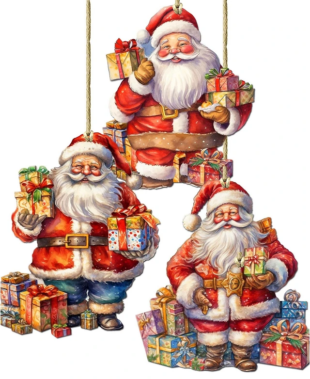 Designocracy Santa's Gifts Wooden Ornaments, Set of 3