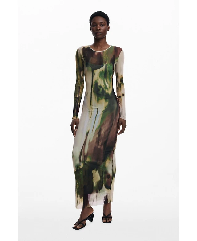 Desigual Girls Girls's Watercolor tulle long-sleeve dress