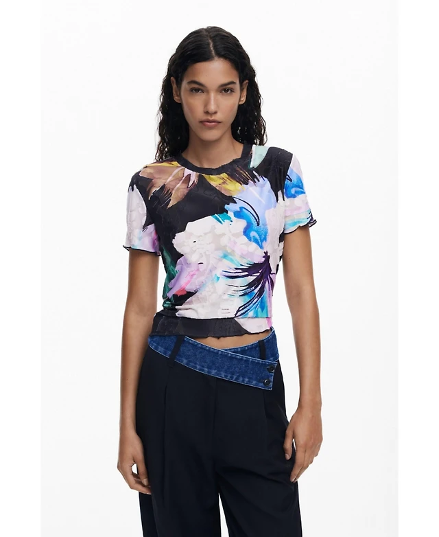 Desigual Women's Short-sleeve floral T-shirt with opening