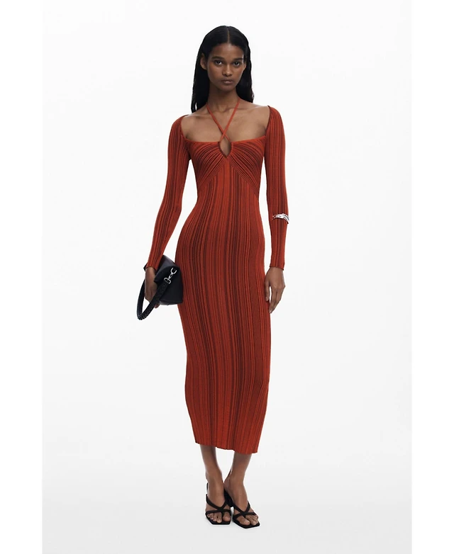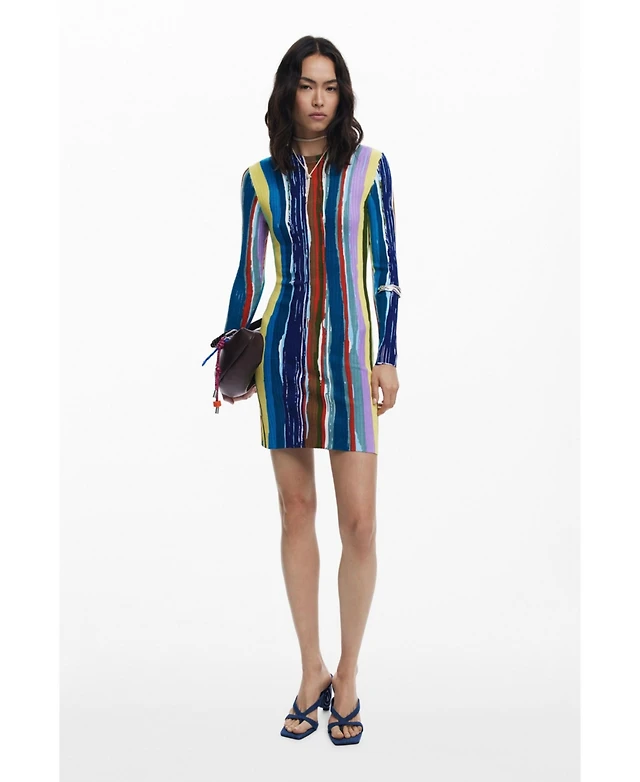 Desigual Women's Ribbed dress with colored stripes