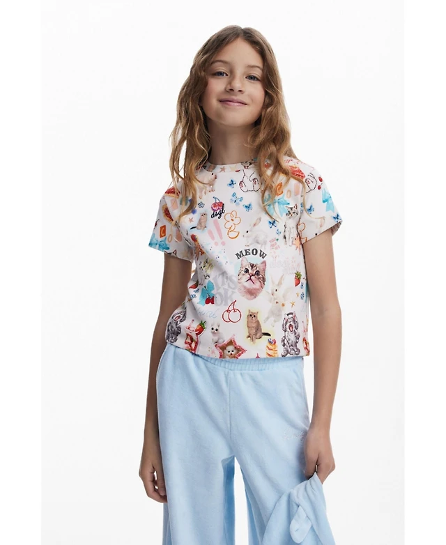 Desigual Girls's Short-sleeve cat T-shirt