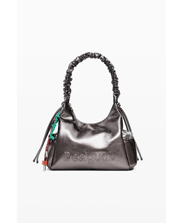 Desigual Women's Metallic medium 3D logo bag with ruched handle