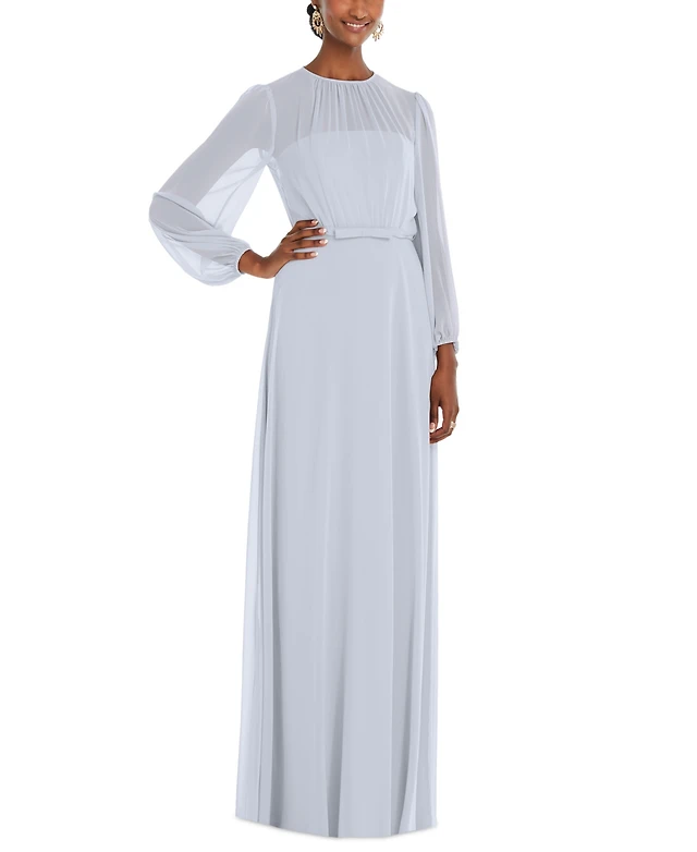 Dessy Collection Women's Strapless Chiffon Maxi Dress with Puff Sleeve Blouson Overlay