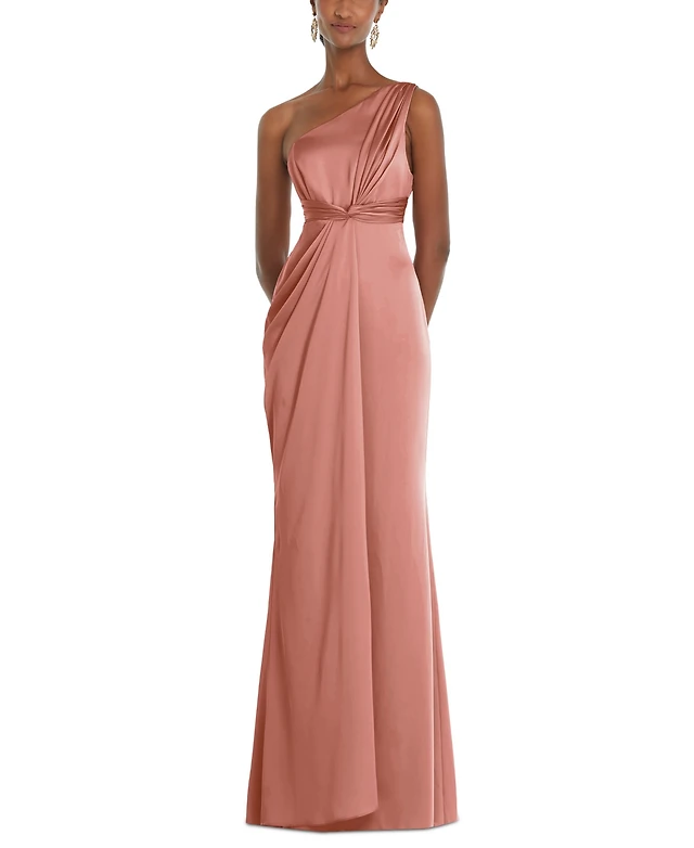 Dessy Collection Women's One-Shoulder Draped Twist Empire Waist Trumpet Gown