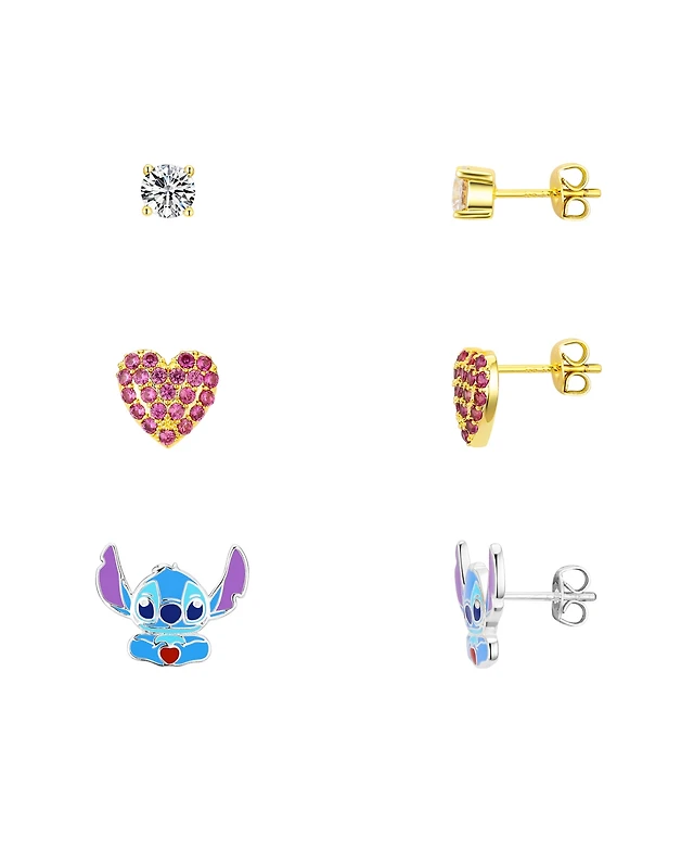 Disney Cubic Zirconia Lilo and Stitch Heart Earring Set