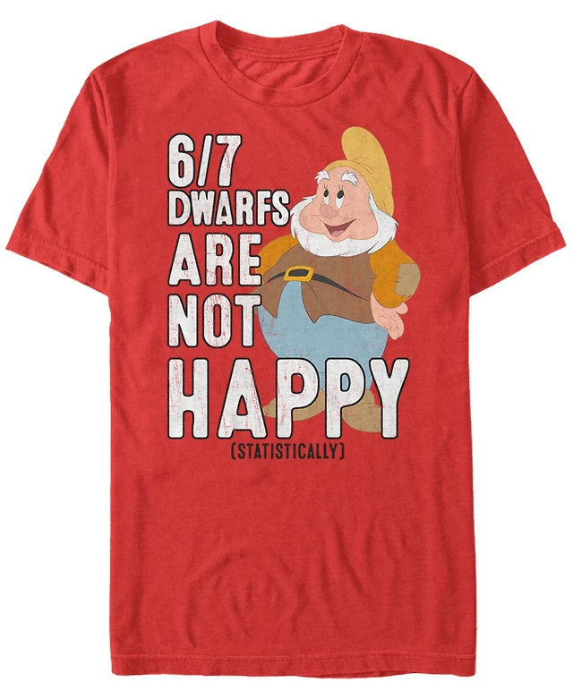 Disney Men's Snow White Statistically 6/7 Dwarfs are Unhappy Short Sleeve T-Shirt