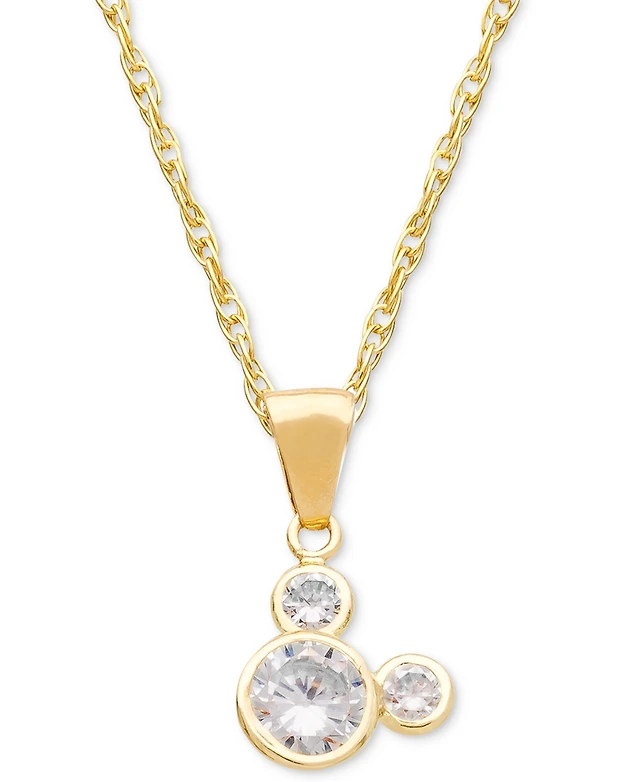Disney Children's Cubic Zirconia Mickey Mouse 15" Pendant Necklace in 14k Gold