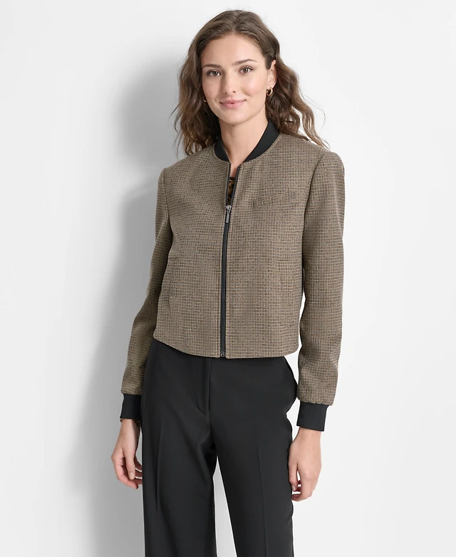 Dkny Petite Tweed Zip-Front Bomber Jacket