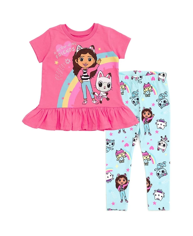 Gabby's Dollhouse Girls Dreamworks Pandy Paws Box Cakey Cat Peplum T-Shirt and Leggings Outfit Set