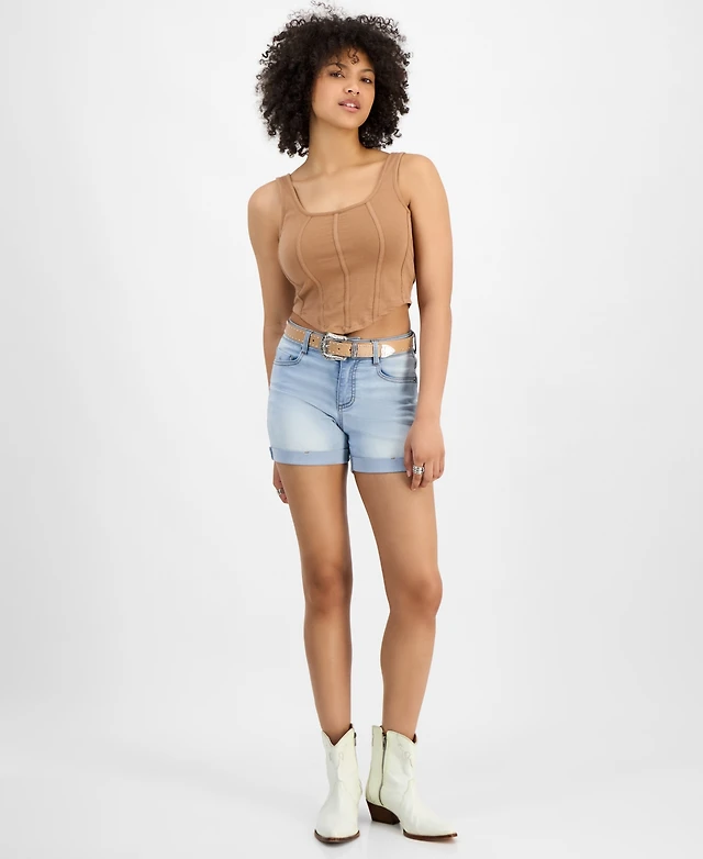 Dollhouse Juniors' Belted High-Rise Cuffed Shorts