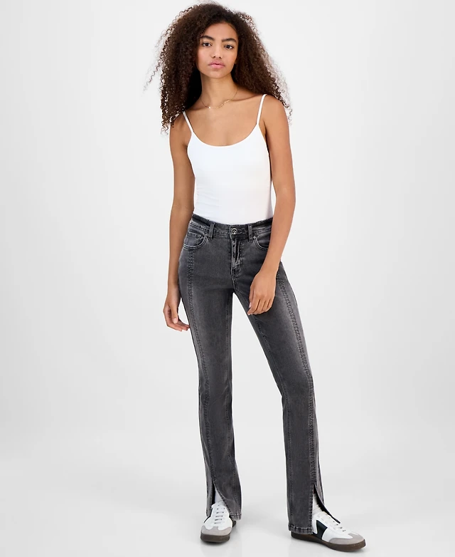 Dollhouse Juniors' Mid-Rise Seamed Slit-Cuff Bootcut Jeans