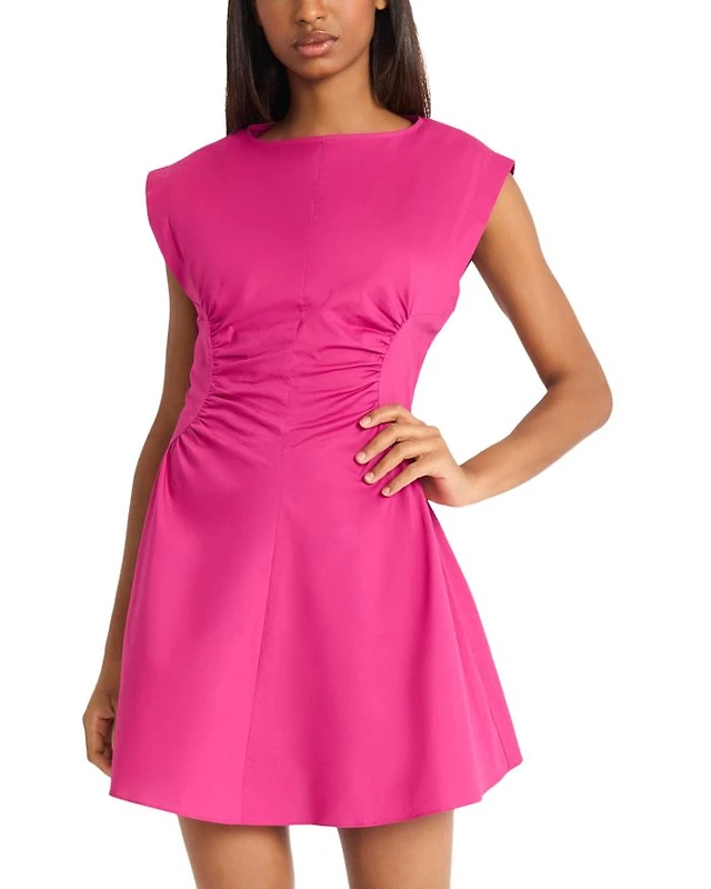 Gathered Linen Mini Dress