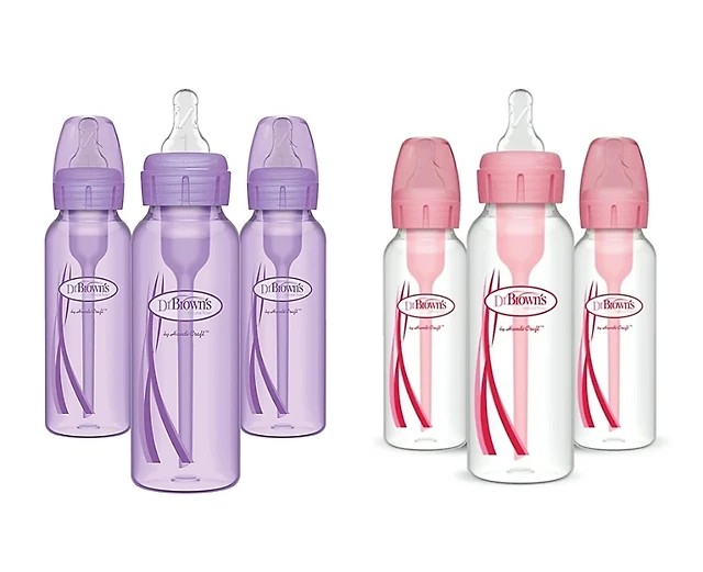 Dr. Browns Baby Natural Flow Anti-Colic Baby Bottles, Pink and Lavender, 8oz, 6 Pack