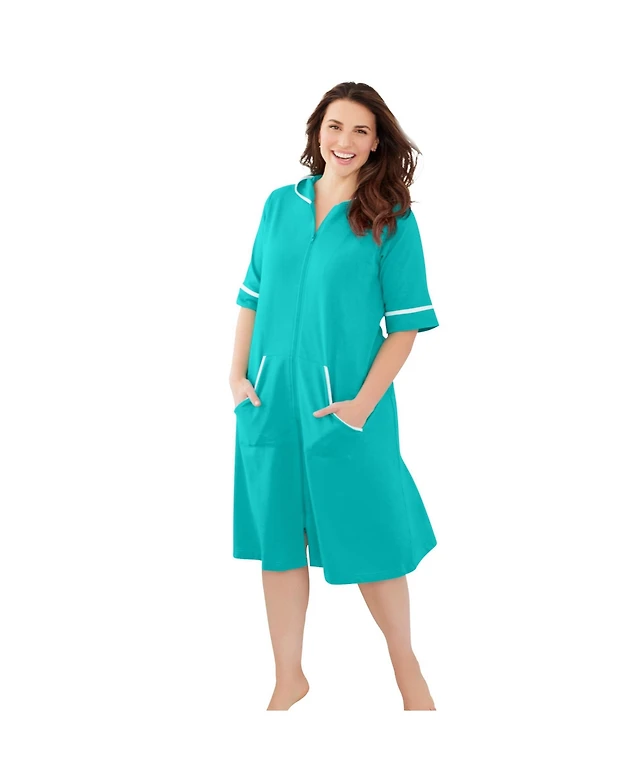 Dreams & Co. Plus Short French Terry Zip-Front Robe