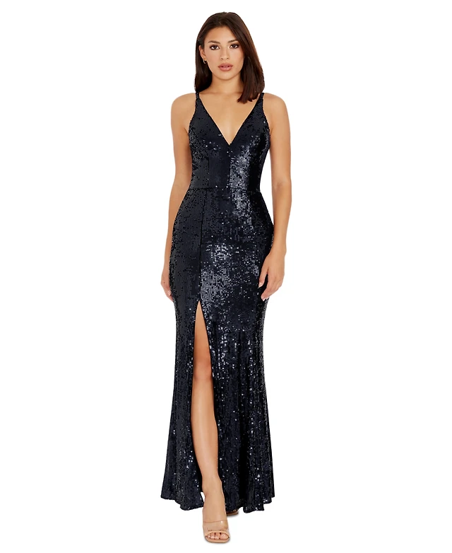 Dress the Population Women's Iris Sequined Side-Slit Gown