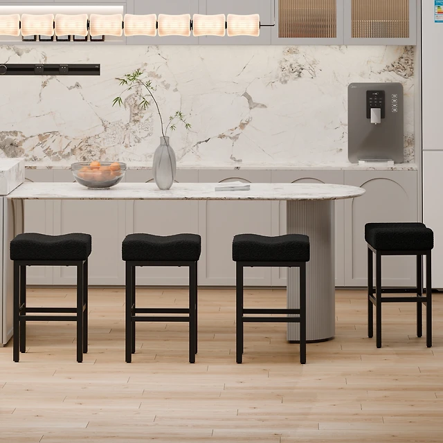 Dyhome Counter Height Bar Stools Set of 4, 27 Inches Modern Kitchen Bar Stools, Metal Legs Backless Saddle Stool Chair for Kitchen Island, Cafe