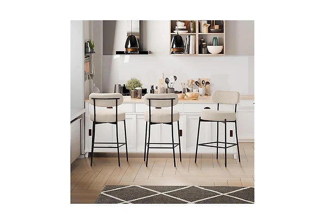 Dyhome Bar Stools Set of 3, 24 Inches Modern Counter Height with Curved Back, Upholstered Boucle Barstools for Kitchen Island, Cafe