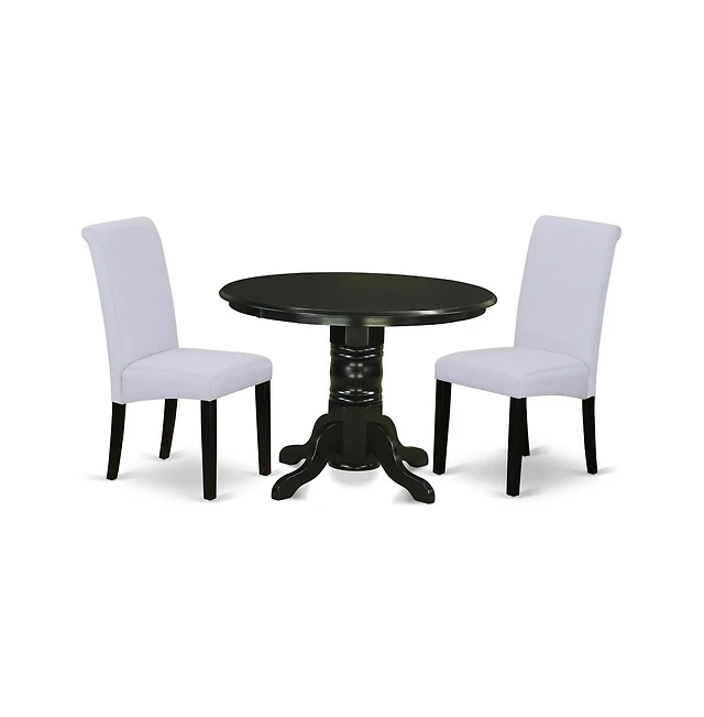 East West Furniture 3 Piece Dining Room Set - Linen White Round Dining Table and 2 Shitake Linen Fabric Modern Chairs with High Back