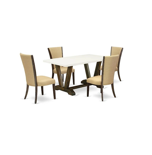 East West Furniture 5-Piece Gorgeous Rectangular Dining Room Table Set an Excellent Linen White dining table Top and 4 Stunning Linen Fabric Dining Ro