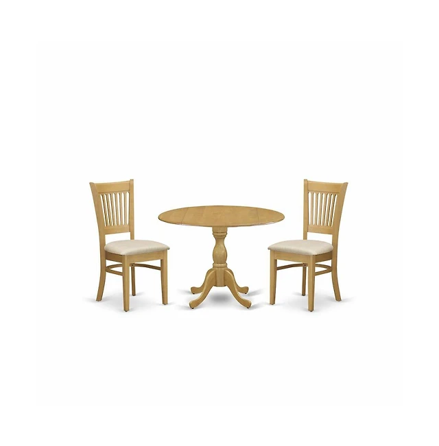 East West Furniture 3 Piece Kitchen Dining Table Set - Oak Breakfast Table and 2 Oak Linen Fabric Dining Chairs with Slatted Back - Oak Finish