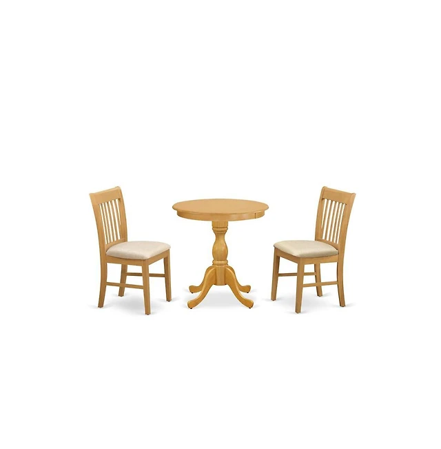 East West Furniture 3-Piece Dinette Room Set- 2 Kitchen Dining Chair and Wooden Dining Table - Wooden Seat and Slatted Chair Back - Oak Finish