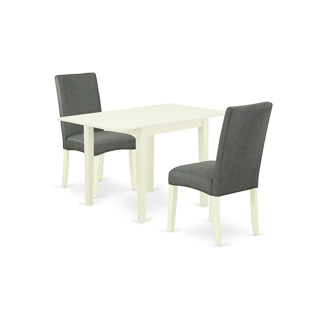 East West Furniture 3-Piece Dining Table Set- 2 Kitchen Chairs and Modern Kitchen Table - Linen Fabric Seat and Slatted Chair Back