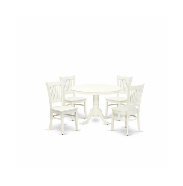 East West Furniture 5-Piece Fashionable Dining Room Set a Good Linen White Wood Table Top and 4 Stunning Linen Fabric Kitchen Chairs with Stylish Chai