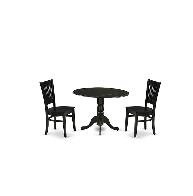 East West Furniture 3-Pc Kitchen Dining Set- 2 Modern Chair with Wooden Seat and Slatted Chair Back - Drop Leaves Dining Table - Black Finish