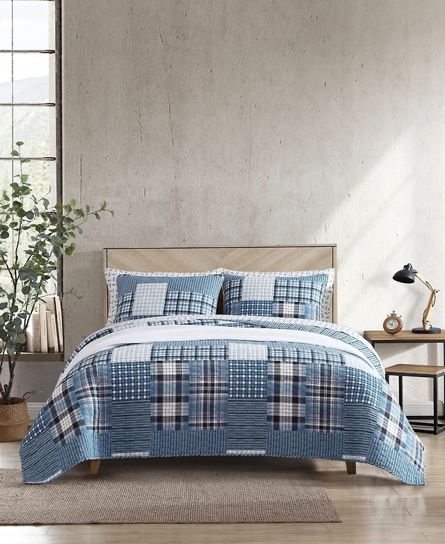 Eddie Bauer Gingham Patchwork Cotton Reversible 3-Pc. Quilt Set