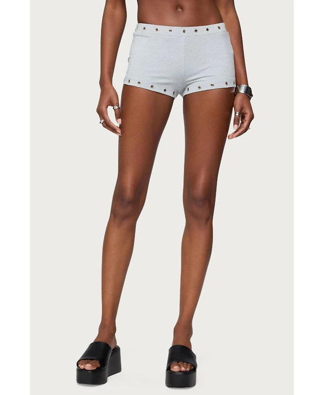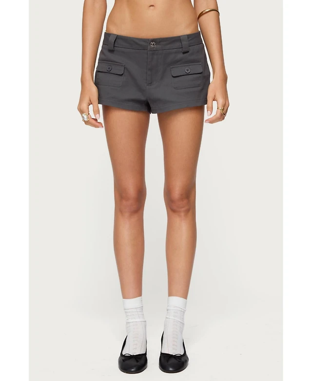 Edikted Womens Syra Zipper Low Rise Denim Shorts