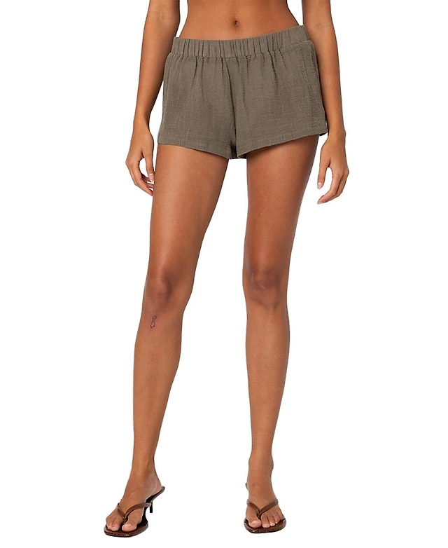 Edikted Kaylan Grommet Faux Leather Shorts