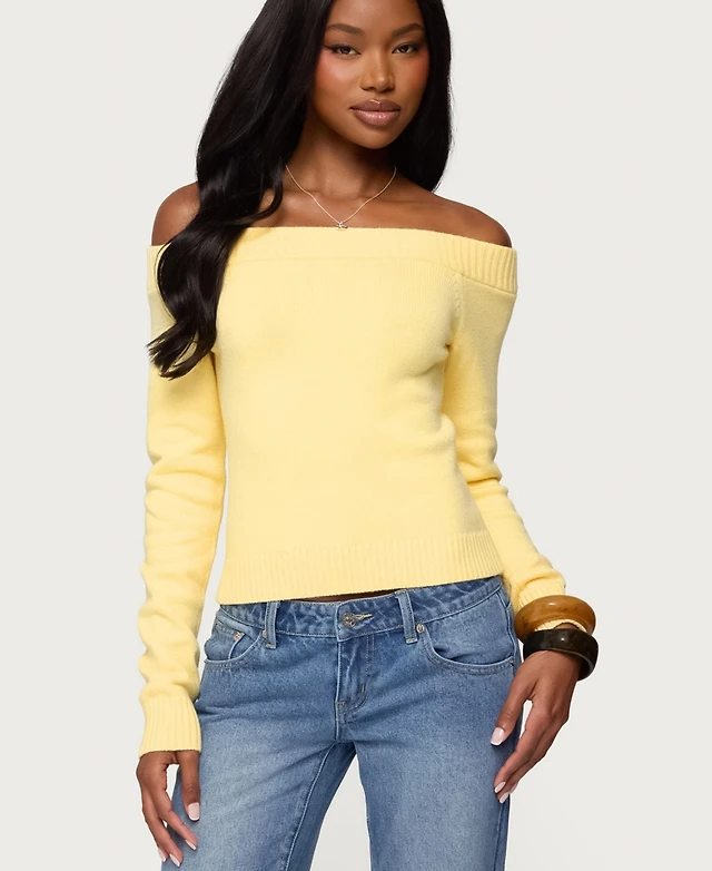 Edikted Women's Kezzie Contrast Off Shoulder Knit Top