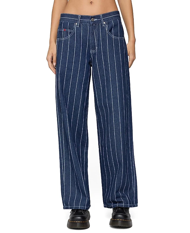 Edikted Kyler Pinstripe Low Rise Dark Rinse Wash Jeans