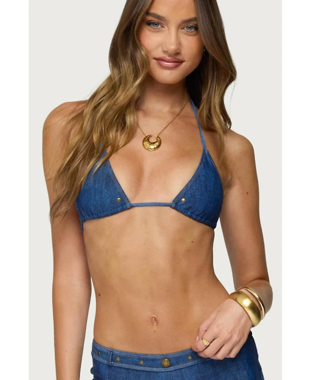 Edikted Women's Agnes Denim Printed Triangle Bikini Top