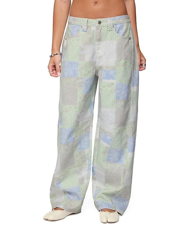 Edikted Patchwork Low Rise Baggy Light Rinse Wash Jeans