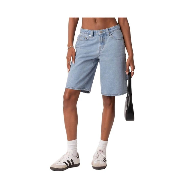 Edikted Women's Low Rise Bermuda Denim Carpenter Shorts