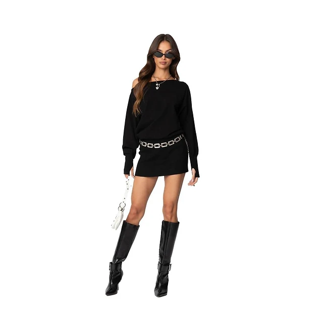 Edikted Womens Eve Off Shoulder Knit Mini Dress