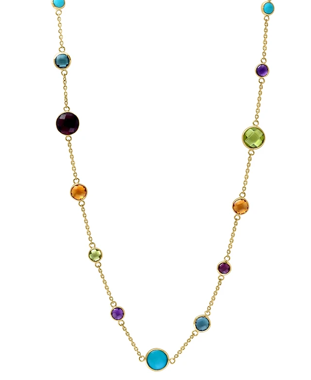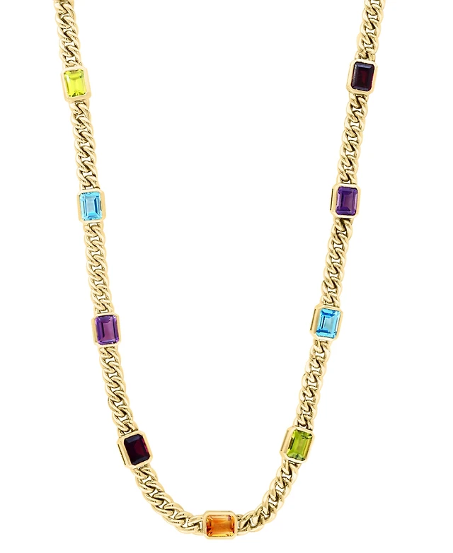 Effy Multi-Gemstone (2-3/8 ct. t.w.) & Diamond (1/4 ct. t.w.) Swirl Cluster 18" Pendant Necklace in 14k Gold