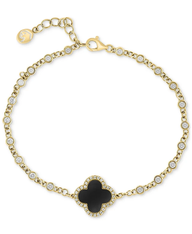Effy Sapphire (1/8 ct. t.w.) & Black and White Diamond (1/5 ct. t.w.) Hamsa Hand & Evil Eye Link Bracelet in 14k Gold