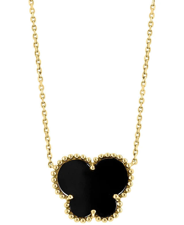 Effy Onyx & Diamond Accent Flower 18" Pendant Necklace in 14k Gold