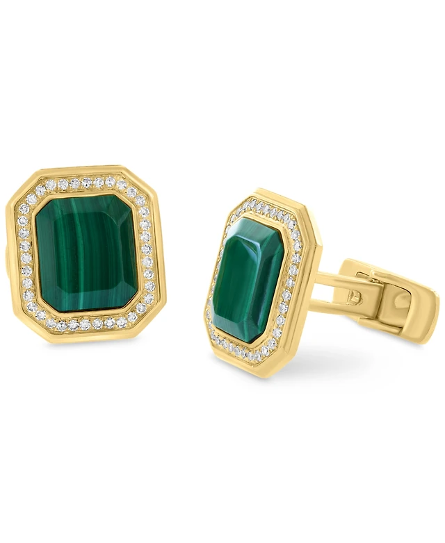Effy Men's Malachite & Diamond (1-1/20 ct. t.w.) Square Ring in 14K Gold