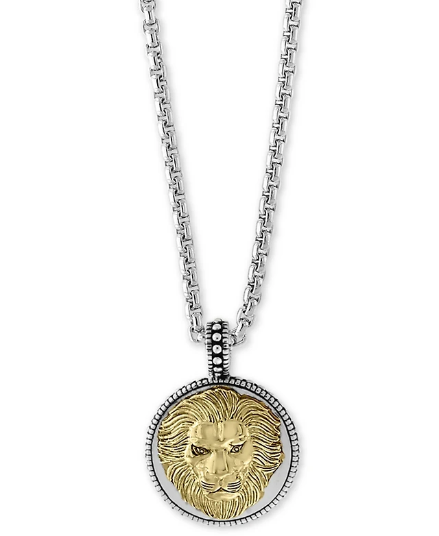 Effy Men's Two-Tone Lion's Head 22" Pendant Necklace in Sterling Silver and 18k Gold-Plate